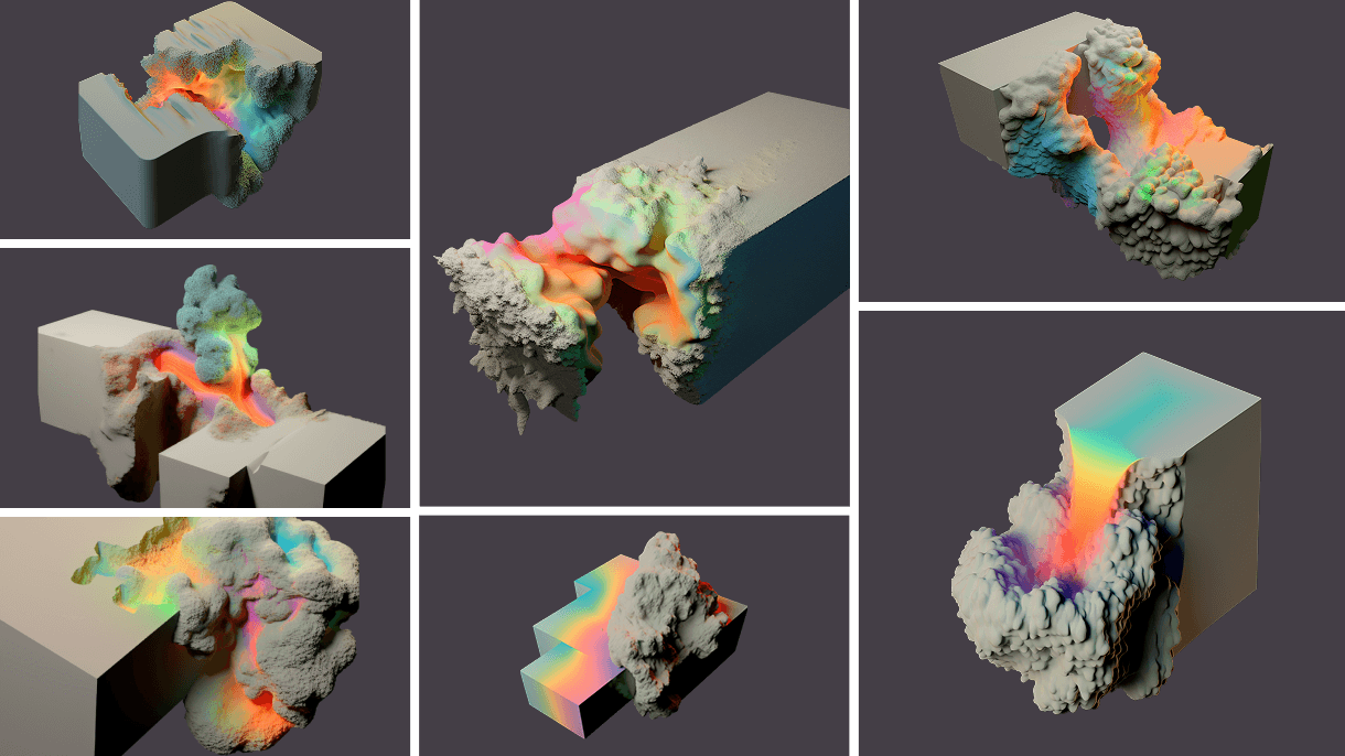 A complete brand system designed 100% with AI: logo, dynamic layout system, color palette, typography, 3D visual assets, motion, and AI-generated personas — deployed across a full digital and out-of-home campaign. The visual language combined concrete architectural forms with organic, regenerative patterns — fractals, corals, crystals — rendered through a custom AI formula and refined in 3D and motion tools. The result was a generative system capable of producing disruptive, high-impact visuals at scale across every format and venue.