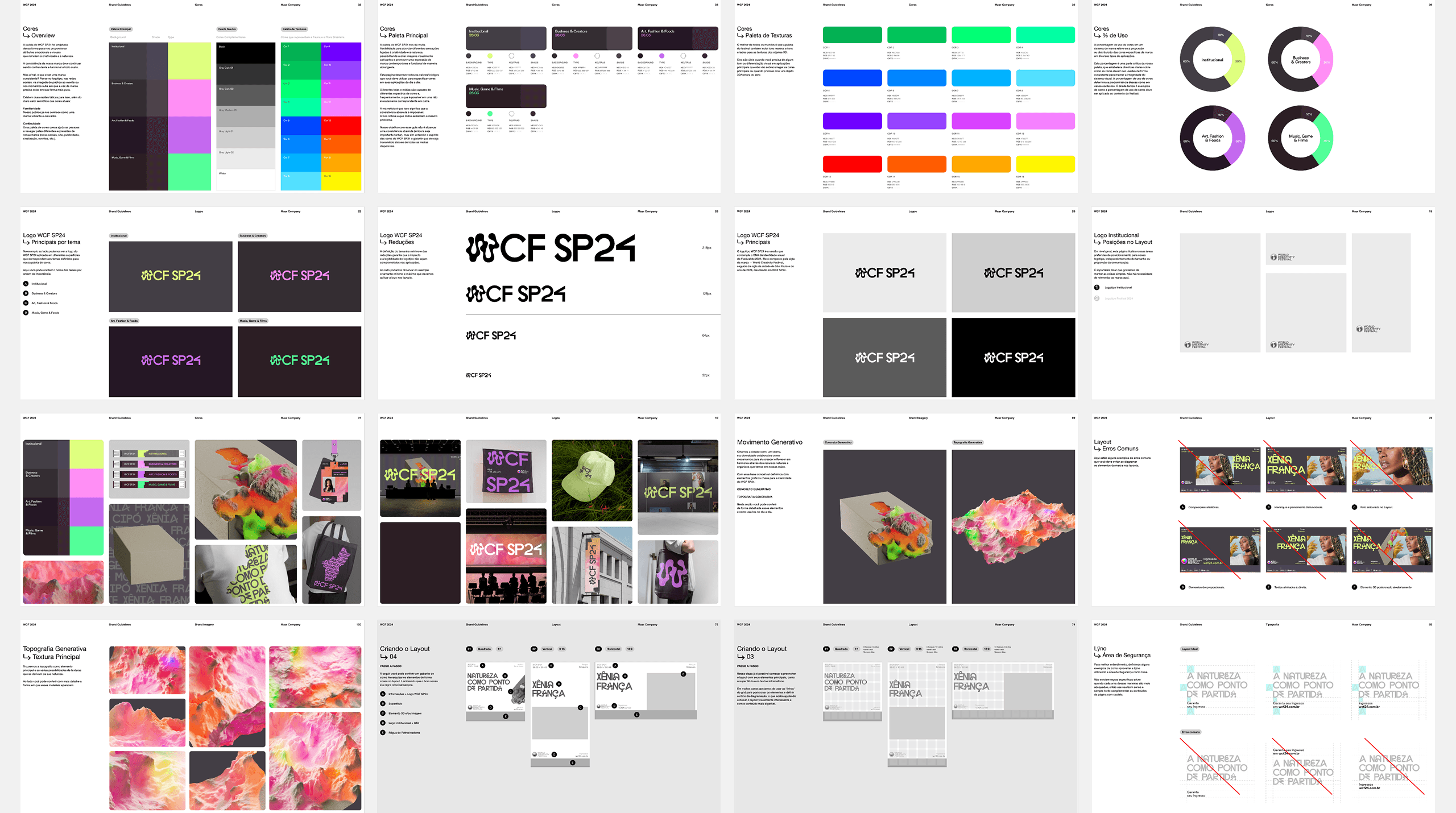 The World Creativity Festival is a Brazilian conference and exhibition celebrating creativity at the intersection of technology and sustainability — held across multiple venues in São Paulo and other cities. The challenge was to create a brand from scratch that could carry a big idea: creativity as a force for transformation. The identity needed to work across a large-scale event with many formats, locations, and audiences, while feeling visually original and conceptually coherent.